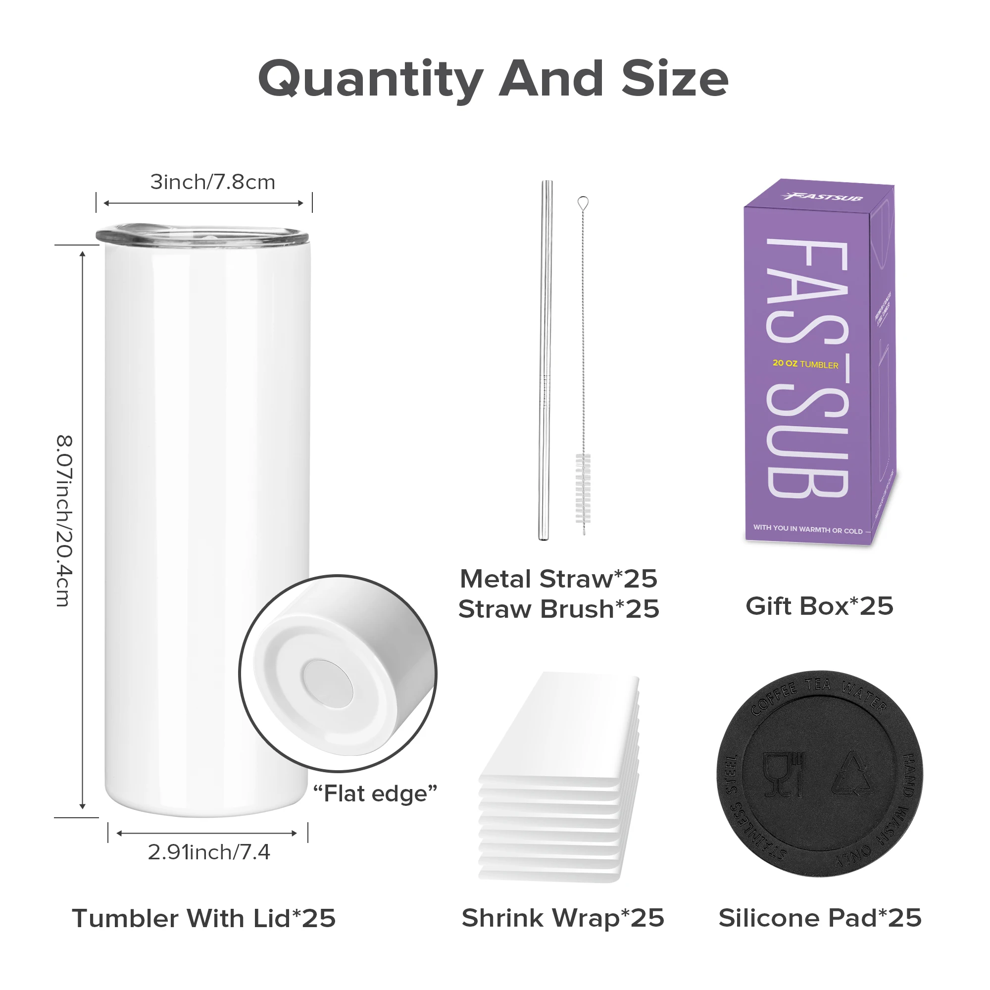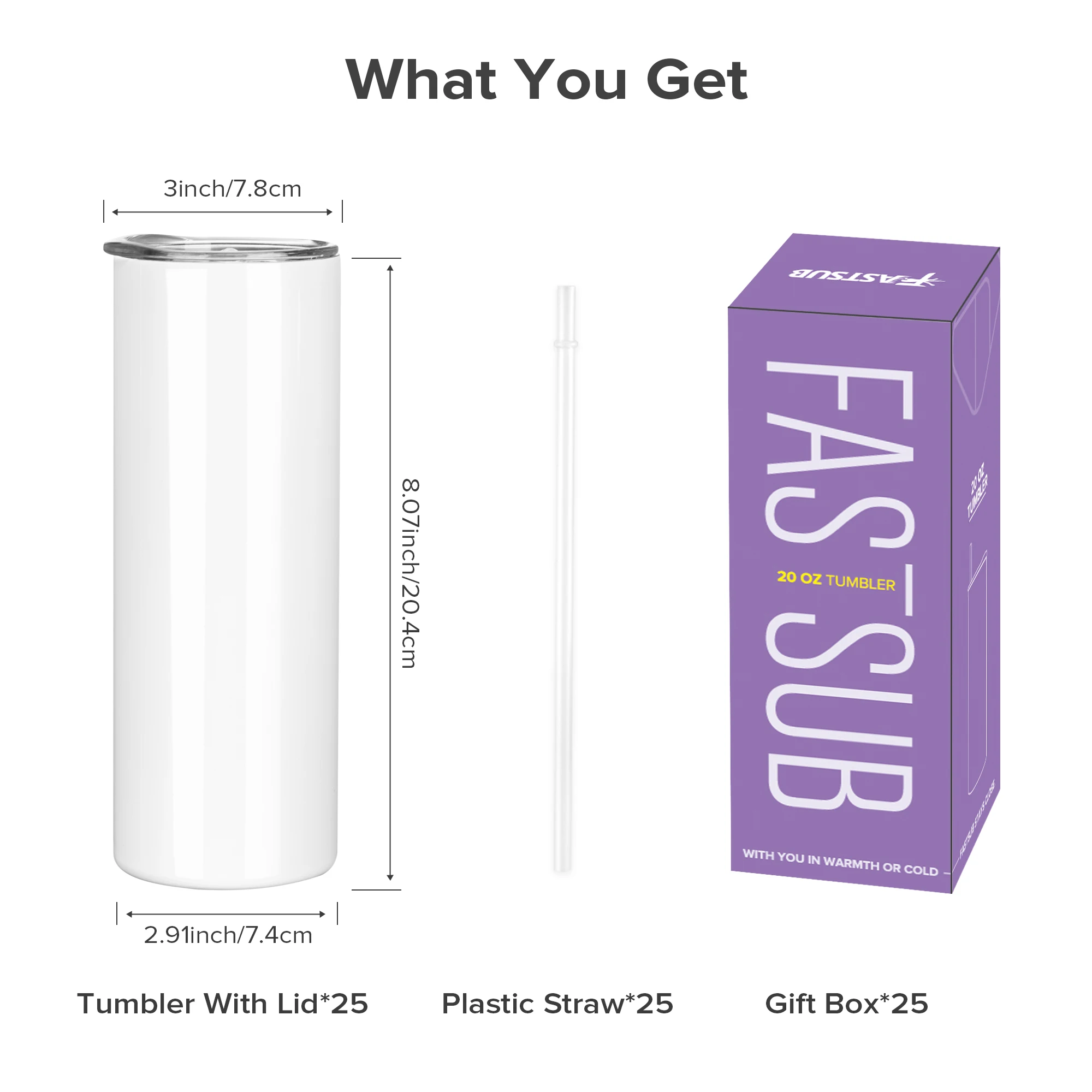 Sublimation Tumblers Blanks 20 oz 25 Pack Skinny Straight Tumblers Bulk Stainless Steel Insulated Sublimation Cups with Lid and